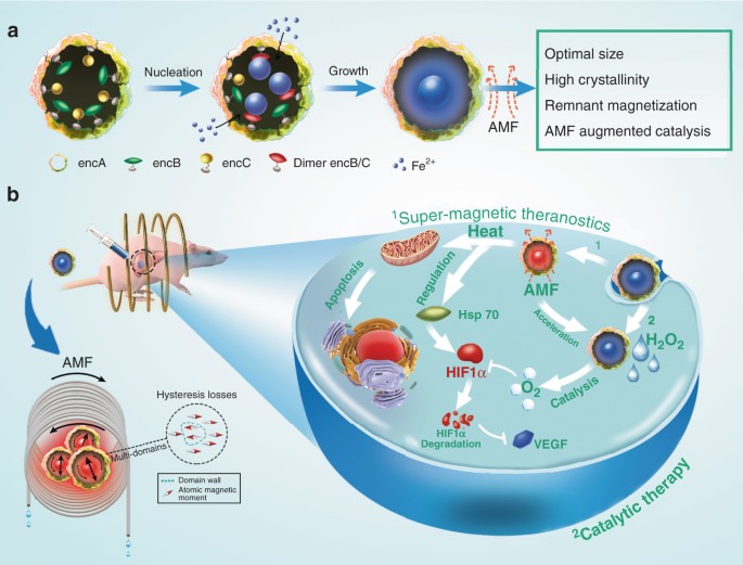 发布时间:2020/11/04 2020年10月27日,国际知名期刊Nature Communications(IF 12.121,JCR1区)在线发表了中心2017级博士生张阳为第一作者的研究论文《Genetically engineered magnetic nanocages for cancer magneto-catalytic theranostics》。该研究利用基因工程和仿生矿化技术制备出具有优异磁-热转化能力及纳米酶催化性能的磁性蛋白纳米笼(eMIONs),成功克服了临床磁热疗法中磁热敏剂低效的瓶颈,为新一代磁热敏剂的研发提供新的思路。
