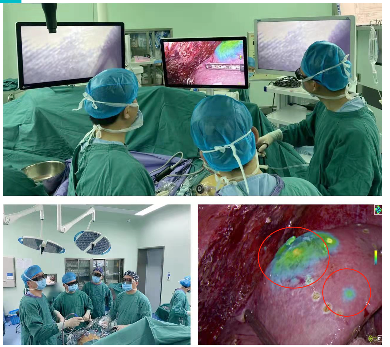 无影灯下,生死时速。面对凶险的肝癌破裂出血,厦门大学分子影像中心刘刚教授团队与川北医学院附属医院肝胆外一科医工结合,运用先进的超稳定均相化碘油-吲哚菁绿(ICG)技术(SHIFT)将碘化油与ICG混合,一期利用碘油栓塞达到止血的目的,二期通过腹腔镜利用ICG术中荧光导航精准切除肿瘤及转移灶,成功挽救了一位巨大肝癌破裂出血患者的生命。