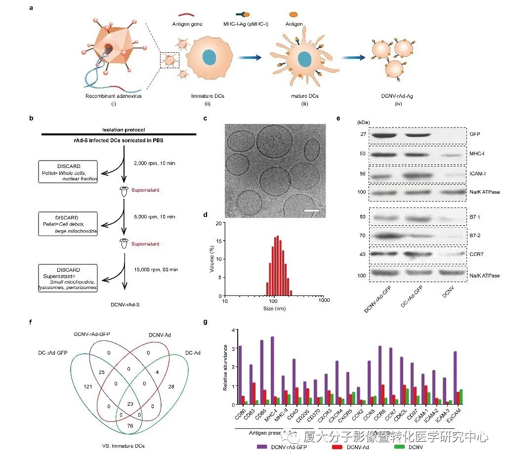 在这项工作中,刘刚教授团队基于课题组创建的细胞膜仿生定向表达展示技术(Adv Mater 2019, Angew Chem 2018, PNAS 2015, et al.),将工程化树突状细胞(DCs)膜作为一种天然的免疫活化信号转导载体,调控DCs表面共刺激分子表达,构建了ASPIRE纳米囊泡疫苗平台,通过多重共刺激信号递送实现多维度的抗肿瘤免疫活化。制备的ASPIRE疫苗体系,因为其来源于DC母细胞表面与归巢效应相关的功能性趋化因子和粘附分子,以及可控的纳米尺寸,所以能迅速穿越组织间隙,实现在淋巴结的富集,并介导CD8+T细胞主导的抗原特异性免疫应答。有别于传统的疫苗递呈方式,研究中所制备的疫苗可以直接将表位递呈至T细胞,且不需要体内的抗原递呈细胞的参与。这种抗原递呈模式很大程度提高了免疫活化的效率。该疫苗即使在实体瘤的治疗中也发挥了非常强劲的效果,实现对实体肿瘤的彻底清除,并诱导长效的免疫记忆,相关授权专利(ZL 202010070724.9)已完成企业技术转移开展临床转化研究。