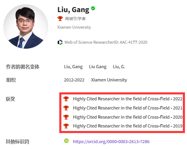 2022年11月15日,科睿唯安公布了2022年全球高被引(Highly Cited Researchers)科学家榜单,刘刚教授再次入榜(Cross-Field),这也是刘刚教授连续第四年(2019-2022)入榜。