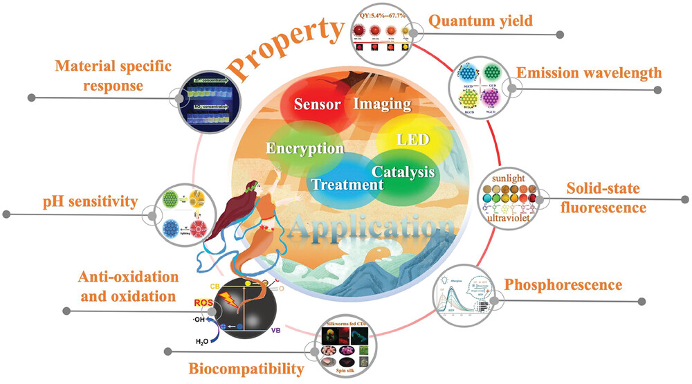 In recent years, carbon dots (CDs) have garnered increasing attention due to their simple preparation methods, versatile performances, and wide-ranging applications. CDs can manifest various optical, physical, and chemical properties including quantum yield (QY), emission wavelength (Em), solid-state fluorescence (SSF), room-temperature phosphorescence (RTP), material-specific responsivity, pH sensitivity, anti-oxidation and oxidation, and biocompatibility. These properties can be effectively regulated through precise control of the CD preparation process, rendering them suitable for diverse applications. However, the lack of consideration given to the precise control of each feature of CDs during the preparation process poses a challenge in obtaining the requisite features for various applications. This paper is to analyze existing research and present novel concepts and ideas for creating CDs with different distinct features and applications. The synthesis methods of CDs are discussed in the first section, followed by a comprehensive overview of the important properties of CDs and the modification strategy. Subsequently, the application of CDs and their requisite properties are reviewed. Finally, the paper outlines the current challenges in controlling CDs properties and their applications, discusses potential solutions, and offers suggestions for future research.