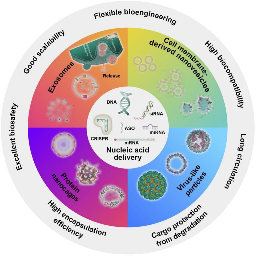 Nucleic acid-based therapy has emerged as a promising therapeutic approach for treating various diseases, such as genetic disorders, cancers, and viral infections. Diverse nucleic acid delivery systems have been reported, and some, including lipid nanoparticles, have exhibited clinical success. In parallel, bioengineered nucleic acid delivery nanocarriers have also gained significant attention due to their flexible functional design and excellent biocompatibility. In this review, we summarize recent advances in bioengineered nucleic acid delivery nanocarriers, focusing on exosomes, cell membrane-derived nanovesicles, protein nanocages, and virus-like particles. We highlight their unique features, advantages for nucleic acid delivery, and biomedical applications. Furthermore, we discuss the challenges that bioengineered nanocarriers face towards clinical translation and the possible avenues for their further development. This review ultimately underlines the potential of bioengineered nanotechnology for the advancement of nucleic acid therapy.